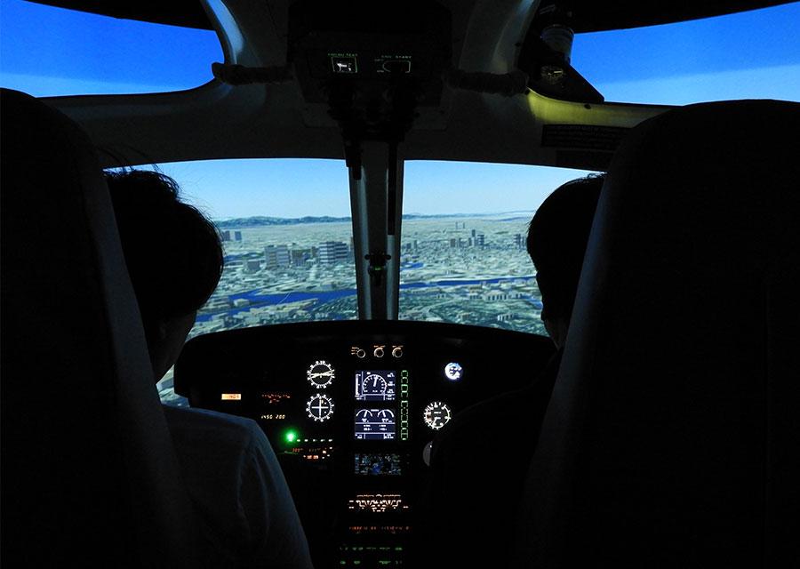 現役パイロットが訓練で使用するシミュレーターで、自分の操縦で飛行出来ます。