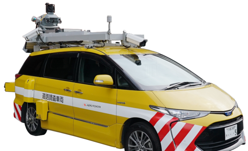 レーザと各種カメラを搭載した車両で、移動しながら計測を行います。
