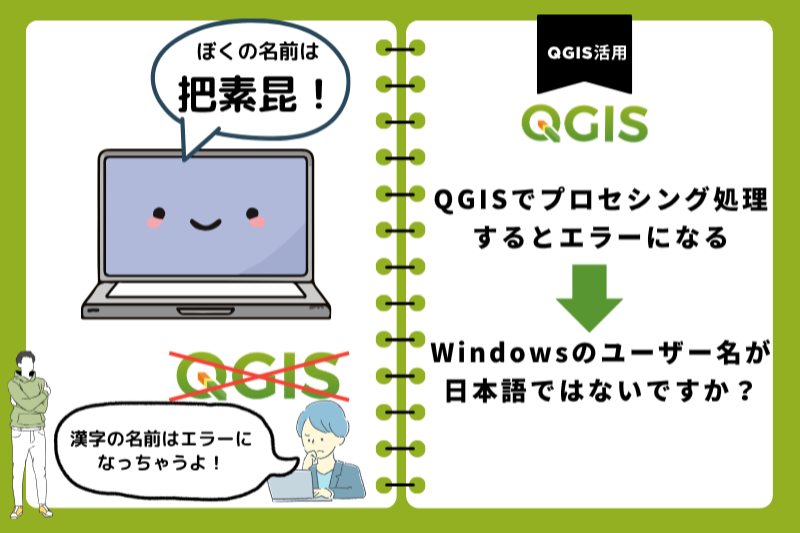・Windowsのユーザーフォルダが日本語の場合、QGISでの処理のエラーを解消する方法がわかります。