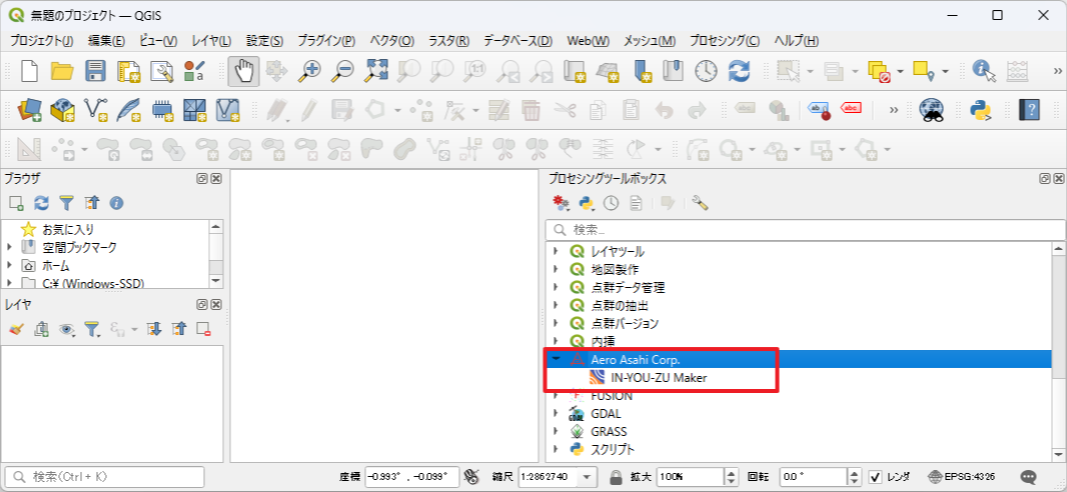 2.プロセシング ▶ ツールボックス > Aero Asahi Corp. を開き,IN-YOU-ZU Maker をダブルクリック