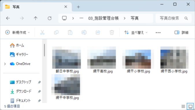・プロジェクトファイルと同じフォルダに「写真」フォルダを作成し、そのフォルダに写真ファイルを保存する