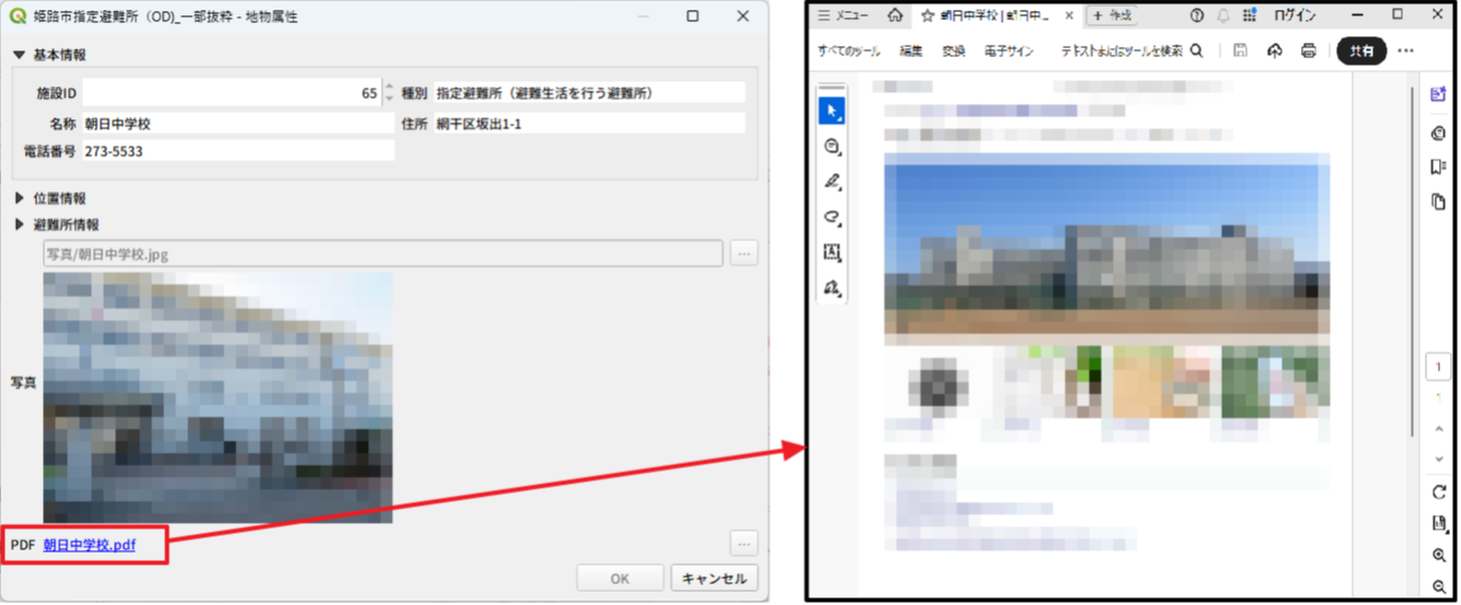 ・属性データに入力された写真ファイルのパスをリンクにして、PDFファイルを表示する