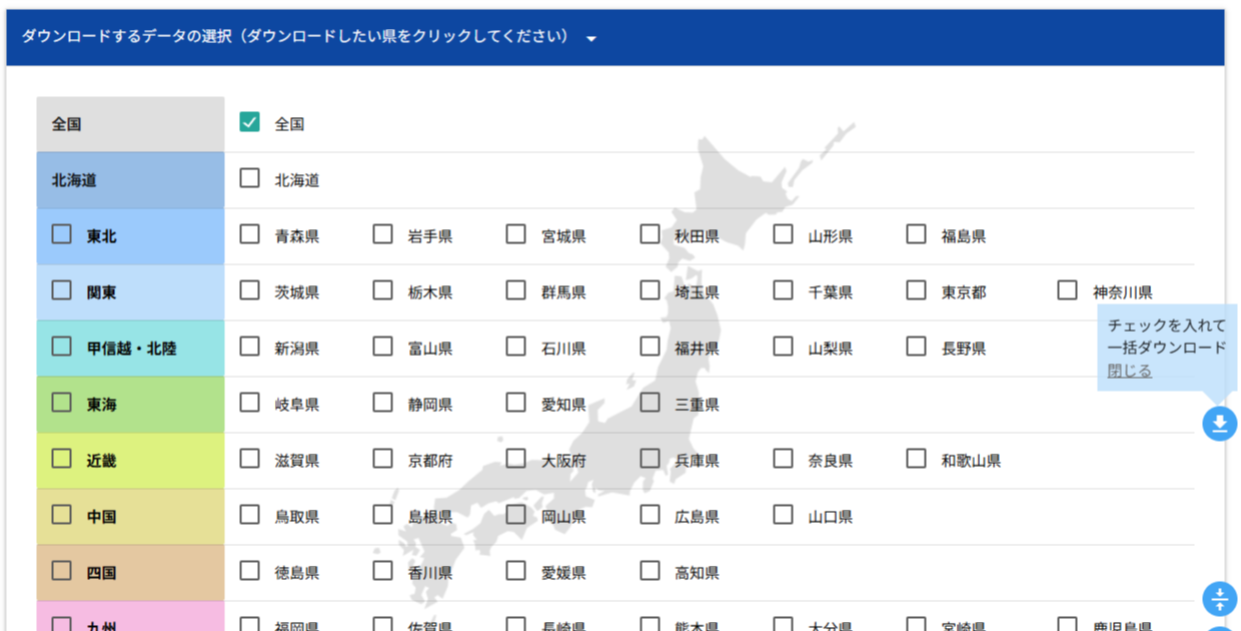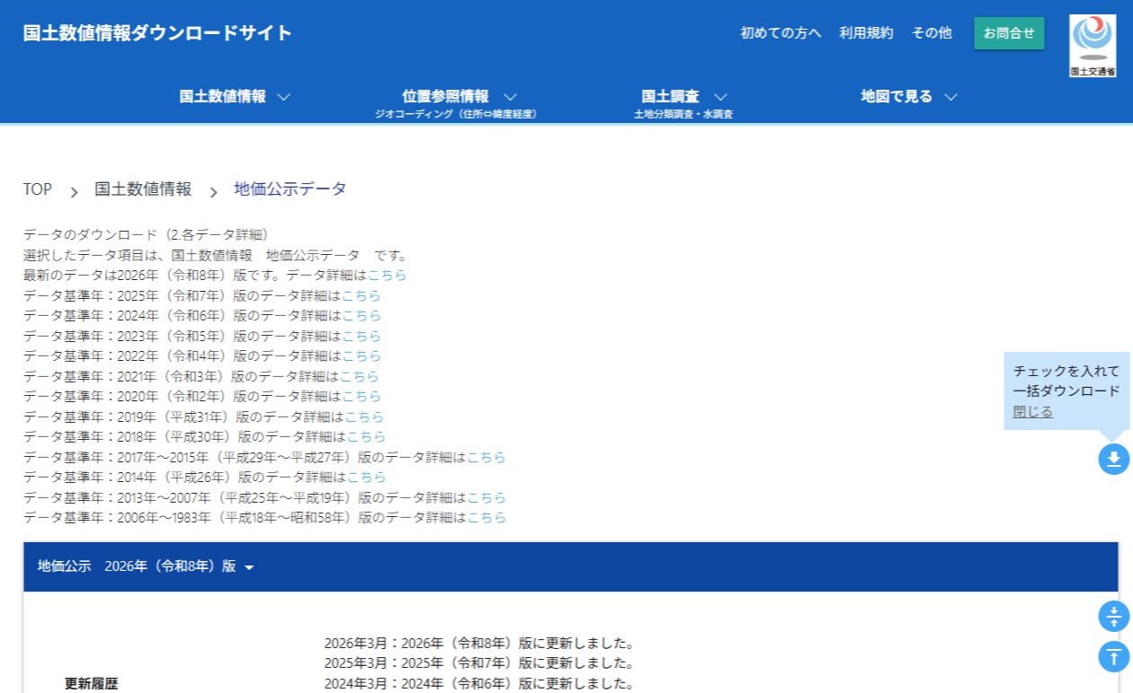地価公示データは、「国土数値情報ダウンロードサイト」からダウンロードできます。
