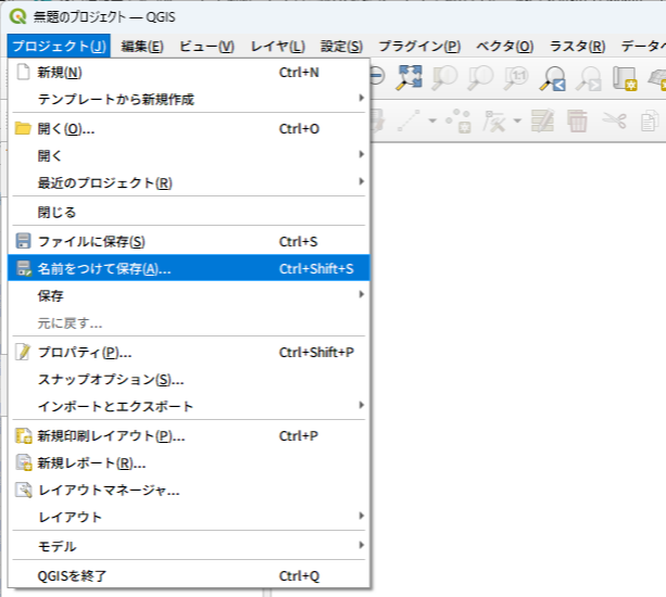 地図が白紙の状態で、一度プロジェクトファイルを保存します。