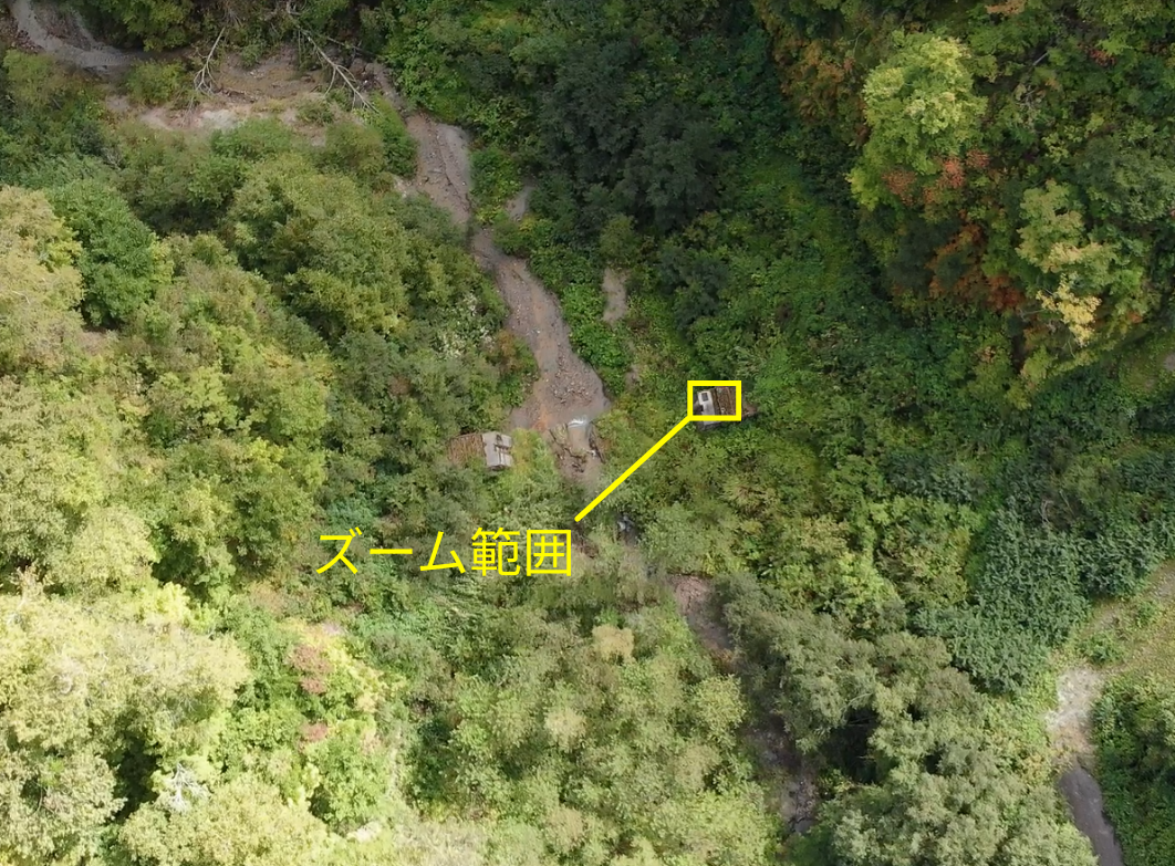 砂防施設は、樹木や草本が繁茂する谷あいに多く点在し、UAVを用いた点検では、安全を確保した上での効率的な飛行と、確実な変状等把握が求められます。LTE通信可能な機体を用いて、安全確保のため十分な対地高度(100m程度)と適切なルート設定をした上で、遠隔でのUAVカメラ操作およびズーム機能を活用し、微小なひび割れ等まで把握する長距離飛行を実現できました。