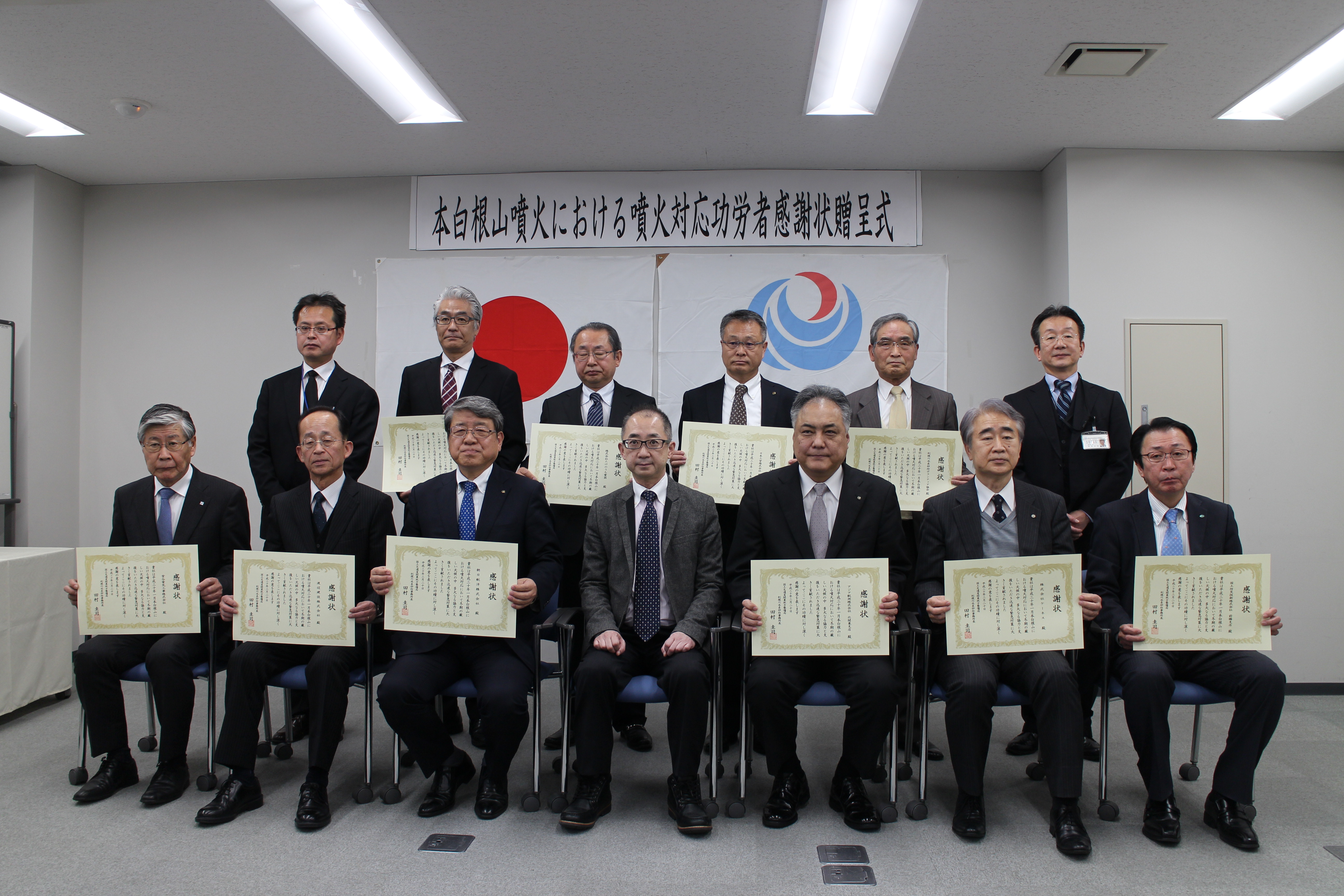 - 本白根山噴火における噴火対応功労者への感謝状を拝受しました