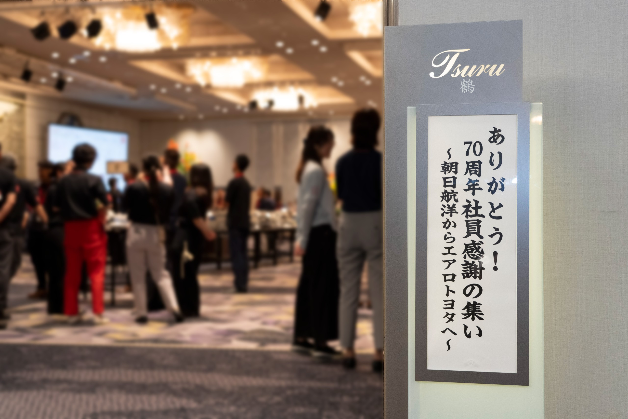 エアロトヨタ株式会社(本社:東京都江東区、代表取締役社長:加藤浩士)は、創立70周年・社名変更を記念し、 「ありがとう!70周年 社員感謝の集い~朝日航洋からエアロトヨタへ~」を新木場格納庫(本社)にて開催いたしました。