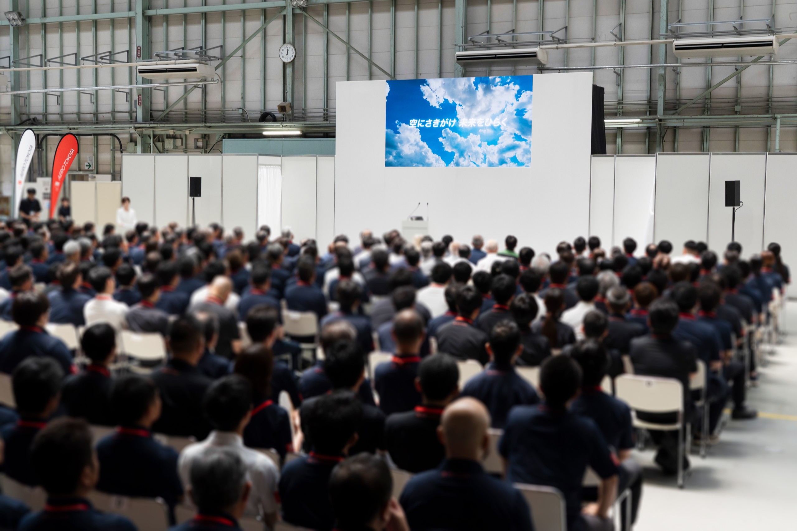 また、全国の拠点へリアルタイム配信を行い、エアロトヨタの歩みを振り返るとともに、未来に向けた方向性を全社員で共有する、貴重なひとときとなりました。