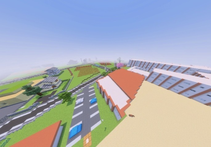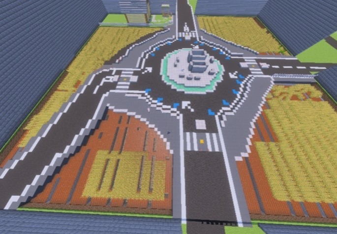 交通安全教室で活用するコンテンツは、前橋市の3D都市モデル※2やエアロトヨタがクルマのビッグデータから作成した通学路上のヒヤリハット情報などを活用し、前橋国際大学がマインクラフト上で永明小学校周辺の仮想空間を再現したものです。授業では、永明小学校の児童が自ら操作し、近隣に開通した環状交差点(ラウンドアバウト)の利用方法や通学路上のヒヤリハットなどの身近な危険を仮想空間上で体験することにより、新たな気づきや学びを得ることを目指します。