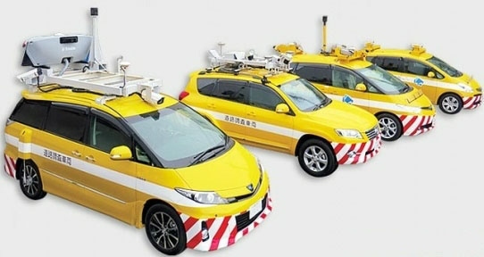 取得した各種データをマッピングに利用するために、GNSS/IMU(全地球測位システム/慣性計測装置)が同時測定されており、GNSS衛星を受信可能な環境下では数cm~数10cmの位置精度で3次元ポイントデータを特定することができます。取得映像による動画GIS、路面オルソ画像から作成する平面図、カラーレーザ点群による3次元離隔測定など、データの用途は多岐にわたります。