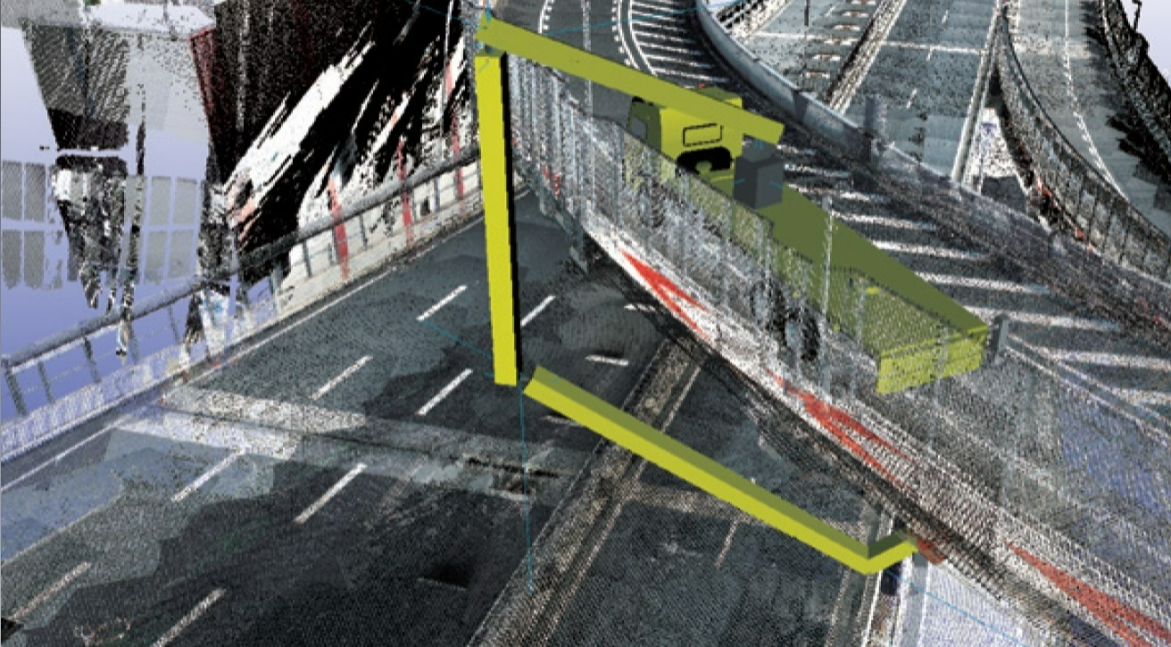 計測したインフラ構造物の3次元点群データを活用した3次元寸法計測、点検車シミュレーション、CAD図面作成、保安規制図作成等の各種機能を備えることで、インフラメンテナンスの高度化・効率化を実現します。