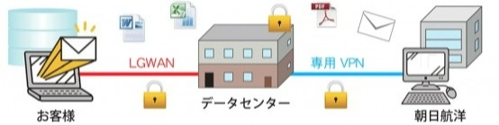 エアロトヨタデータ交換サービスは、LGWAN(行政専用ネットワーク)を利用したデータ交換サービスを用いることで、お客様と弊社間のデータのやり取りをスムーズに行うことができます。