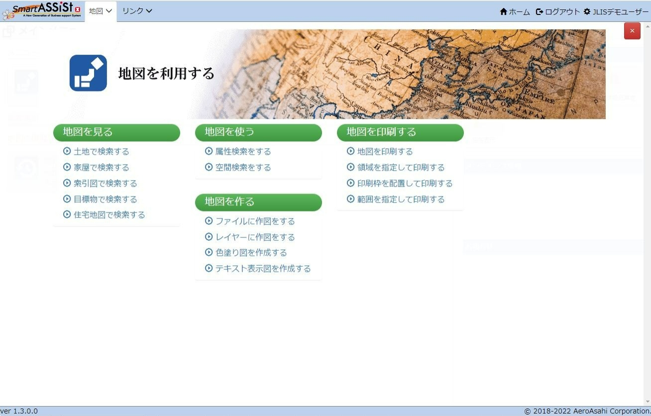 SmartAssist Xは、自治体内で利用されている様々な地理空間情報を検索・閲覧・印刷できる基盤GISです。