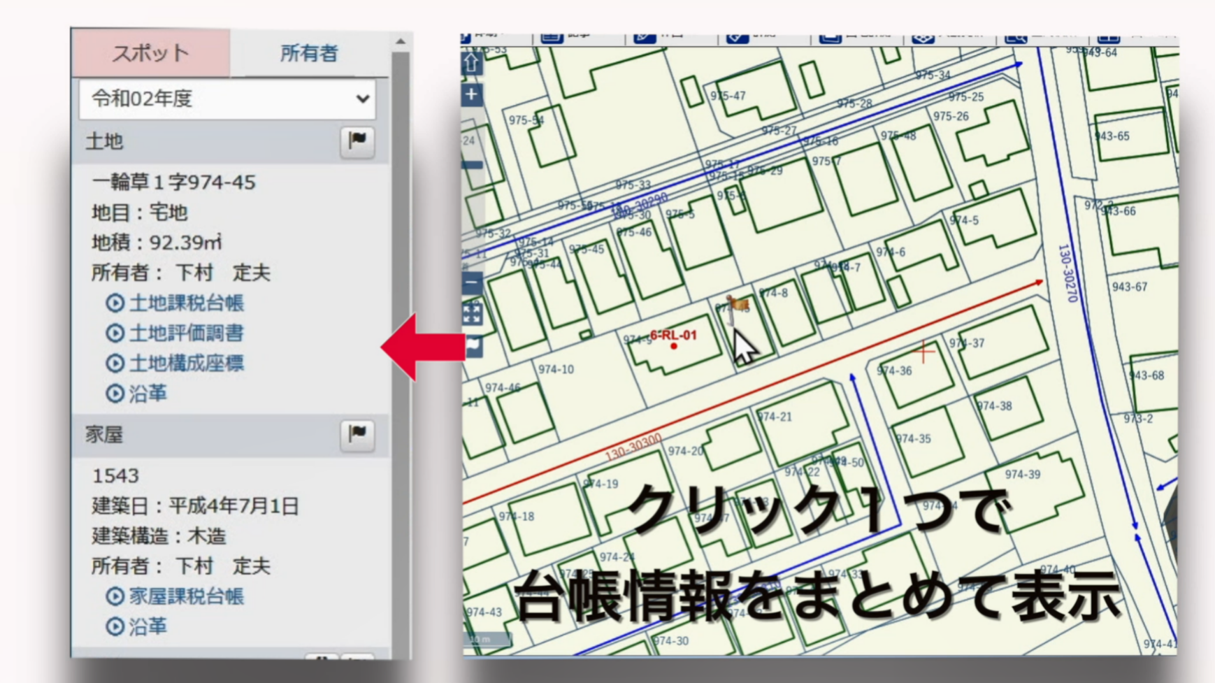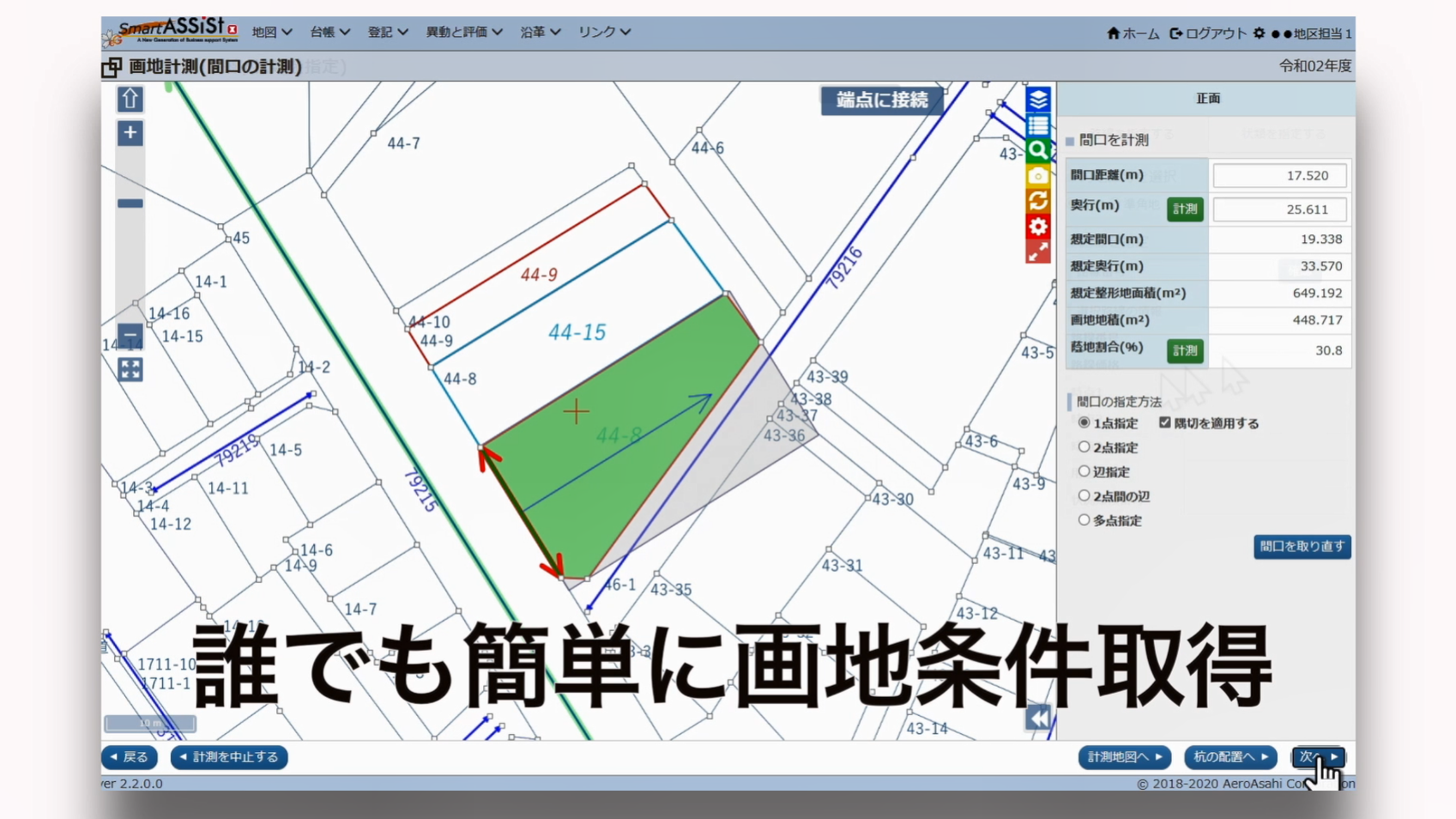 SmartAssist Fは地図を検索、閲覧するだけではなく、画地条件の取得から評価額計算、ホスト連携など、より高度な運用を実現することができます。